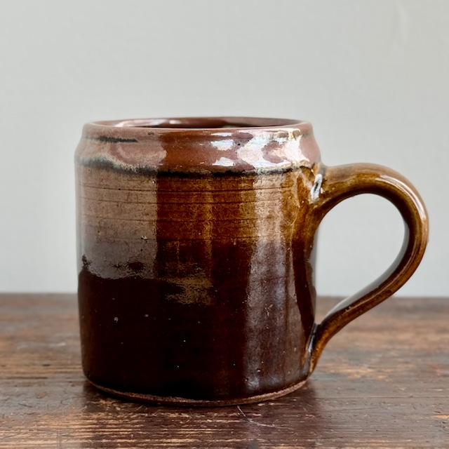 益子焼の中興の祖であり、民藝運動の中心人物でもあった濱田庄司。 その三男として生まれた、濱田篤哉。 父・庄司が 「取っ手の付け方では、篤哉に敵う者はいないだろう」 と語ったという逸話が残るほど、確かな手を持った陶工だった。 自由奔放な気質で、植物や食にも深い関心を寄せていた篤哉。 「美はつくろうとするものではなく、 暮らしの中から自然と立ち上がるものだ」 その父の言葉は、思想としてではなく、 手を通して彼の中に息づいていく。 民藝運動の中心にいた父の名声から一歩距離を取りながら、益子の土と向き合い、日常の器を静かにつくり続けた篤哉。 釉の揺らぎや形の素朴さには、親子のあいだを流れた時間そのものが馴染んでいる。 このマグは、多くを語ろうとはしない。 けれど、親から子へ、 「手」を通して受け継がれたものが、 確かに、ここに残っている。 【サイズ】 直径 約7.5cm(持ち手含む 約12cm) 高さ 約9cm