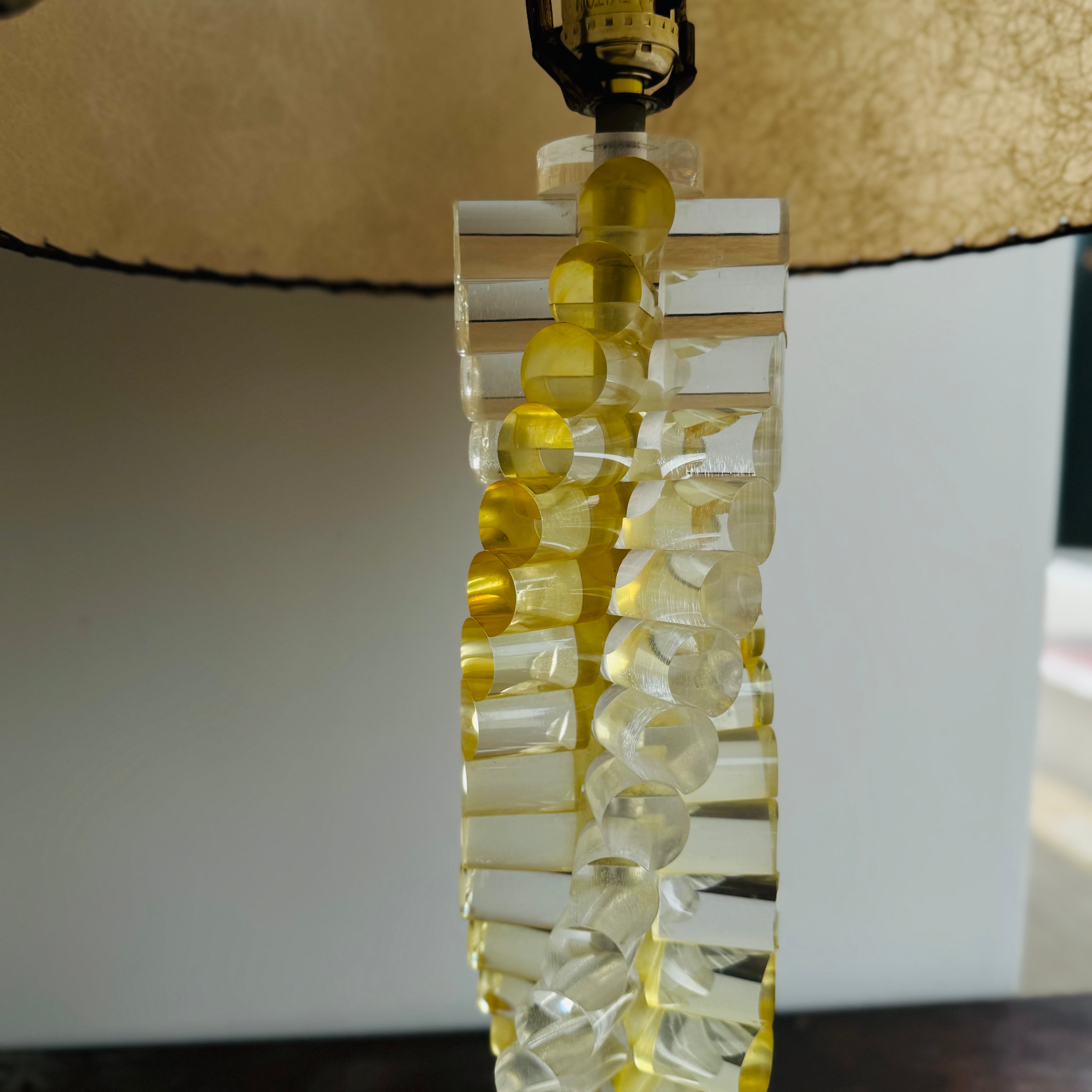 ミッドセンチュリーの時代、未来への希望と自由な発想のなかで生まれた一本の照明。螺旋を描く透明とイエローのアクリルパーツは、まるでDNAの二重らせん構造を思わせ、ひとつひとつの光を優しく反射して空間を包み込みます。