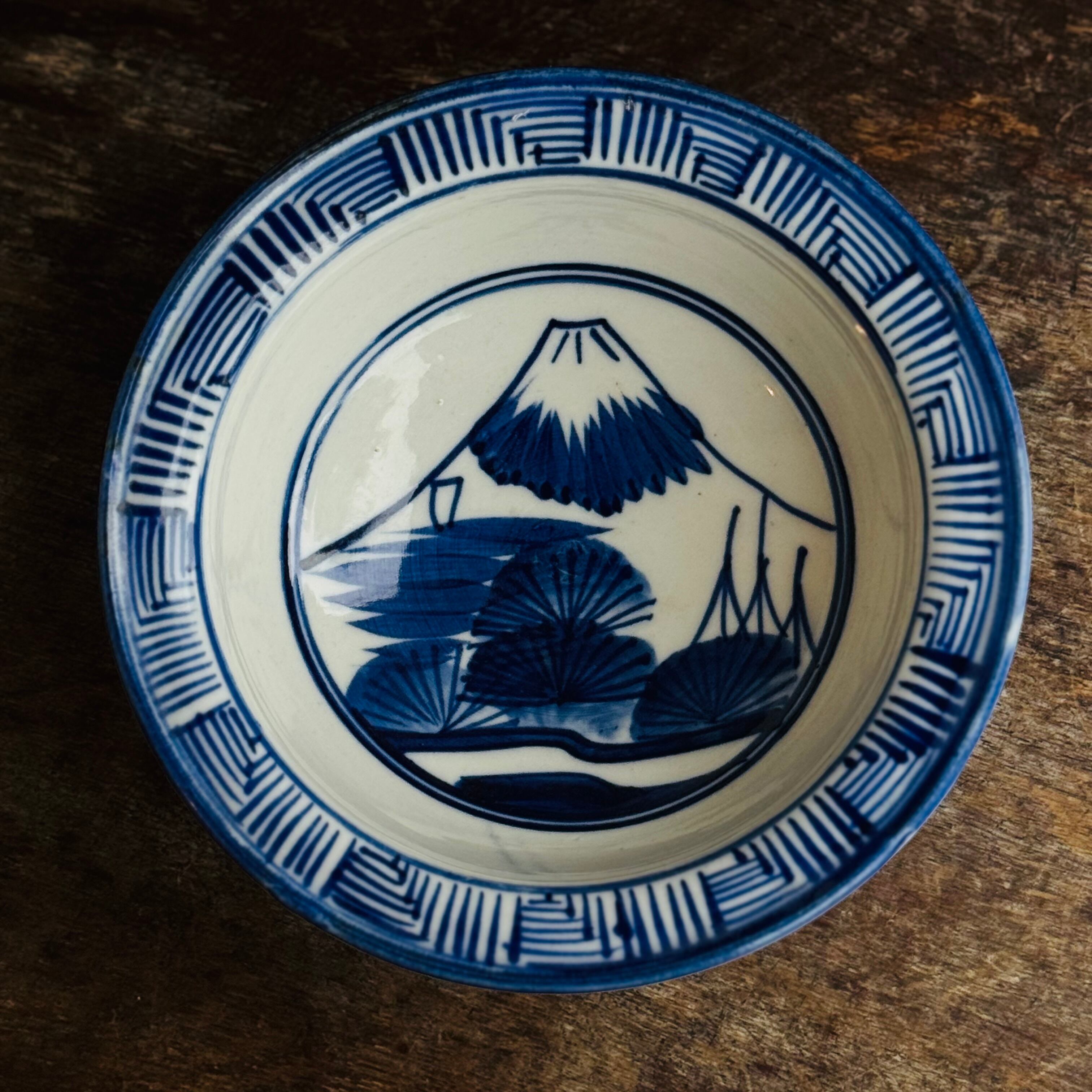 この器を覗き込むと、底にたたずむ富士の姿。まるで自分が空から富士山を見下ろしているような視点の絵付けです。