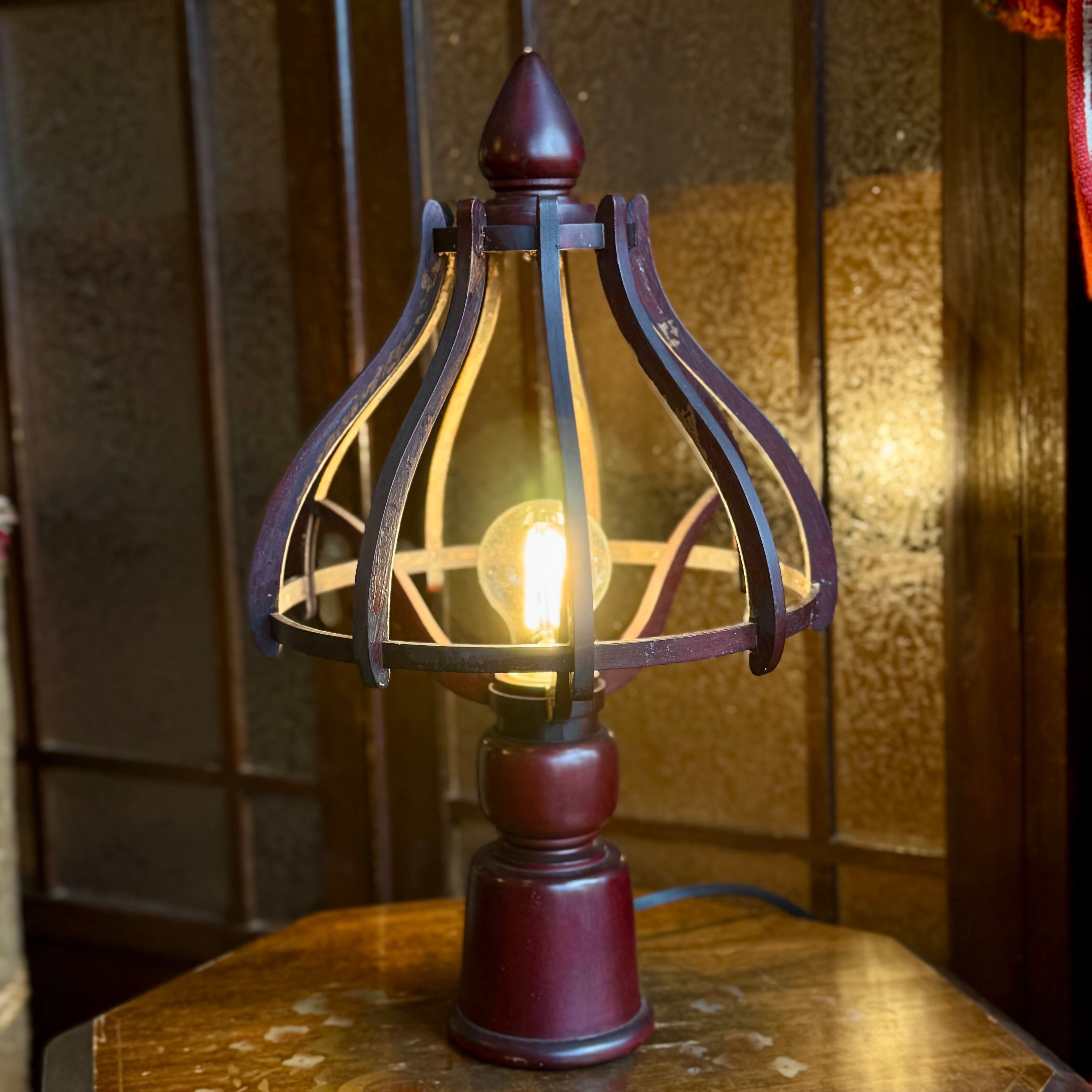 木芸研究会によって製作された、クラシカルな木製テーブルランプ。