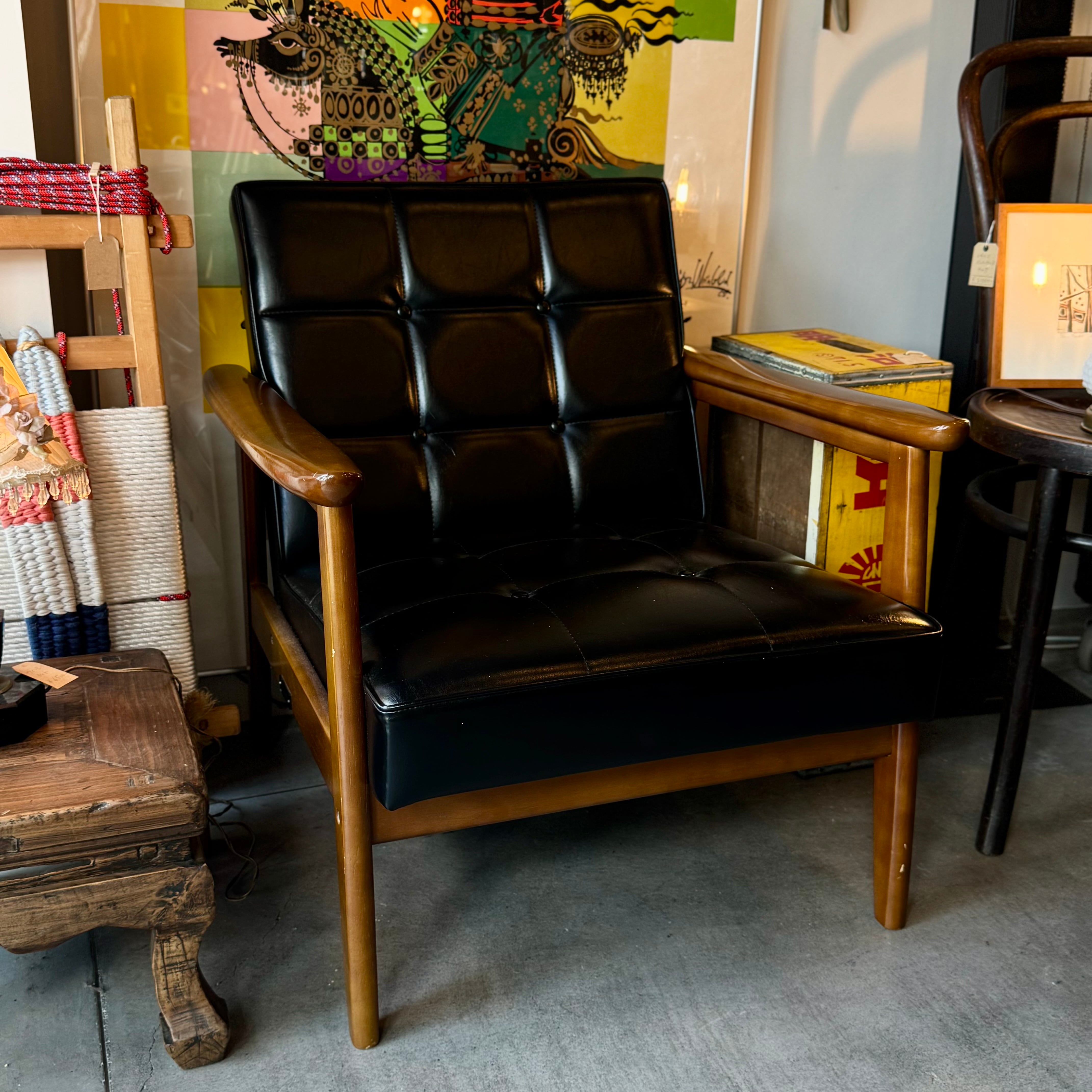 緩やかにカーブする木製アームと、直線的なフレームが織りなすクラシックな佇まい。どこか懐かしさを感じさせながらも、現代の暮らしにも自然に馴染みます。