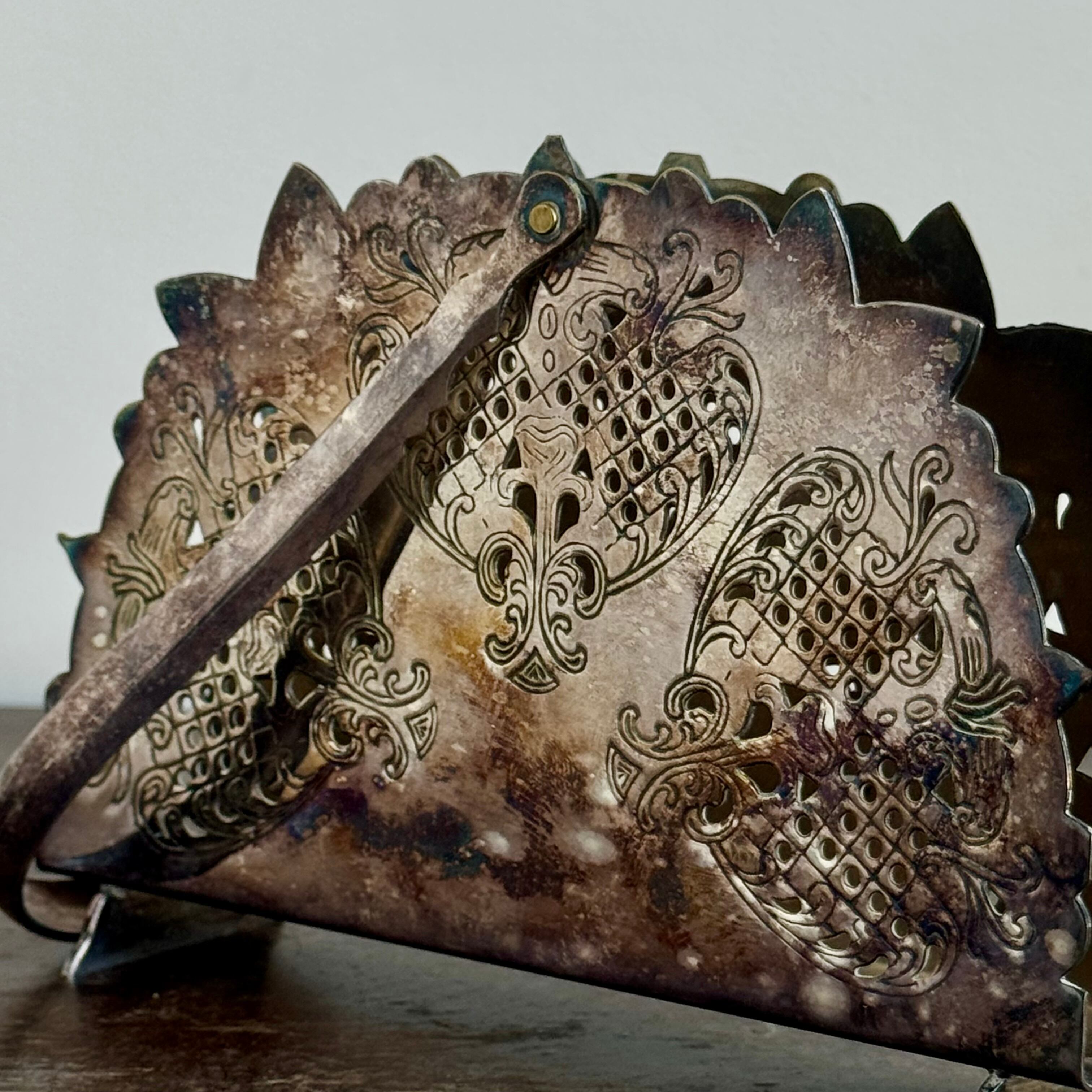 透かし彫りの装飾には、アール・ヌーヴォー的な曲線美と手工芸の温もりが滲み、経年による燻し銀の風合いが空間に静かな重厚さを添えてくれます。