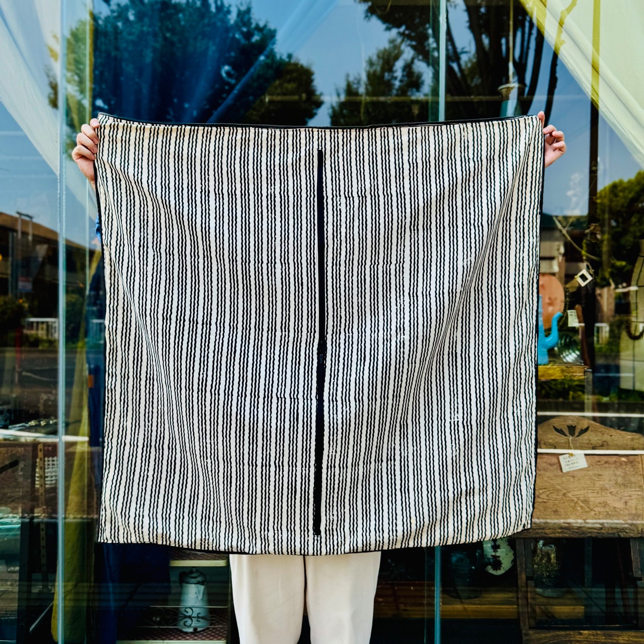 裏面にはジッパーがついているので、中にクッションを入れて大判クッションカバーとして使用できるほか、そのまま壁掛けやソファカバーとして飾ってもいいですね。