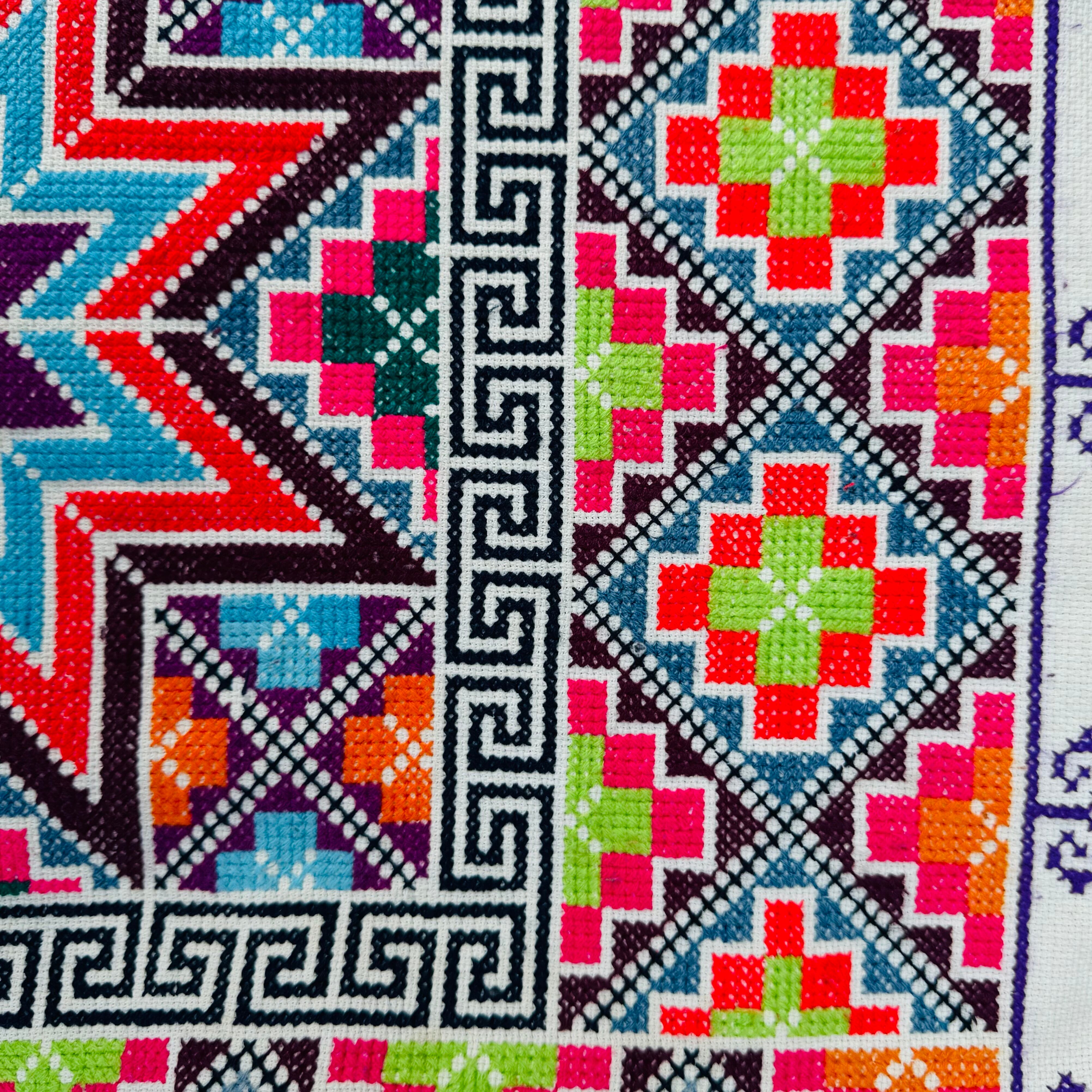 鮮やかな幾何学模様と花文様が目を惹く、エスニックテイストのマルチカバーです。