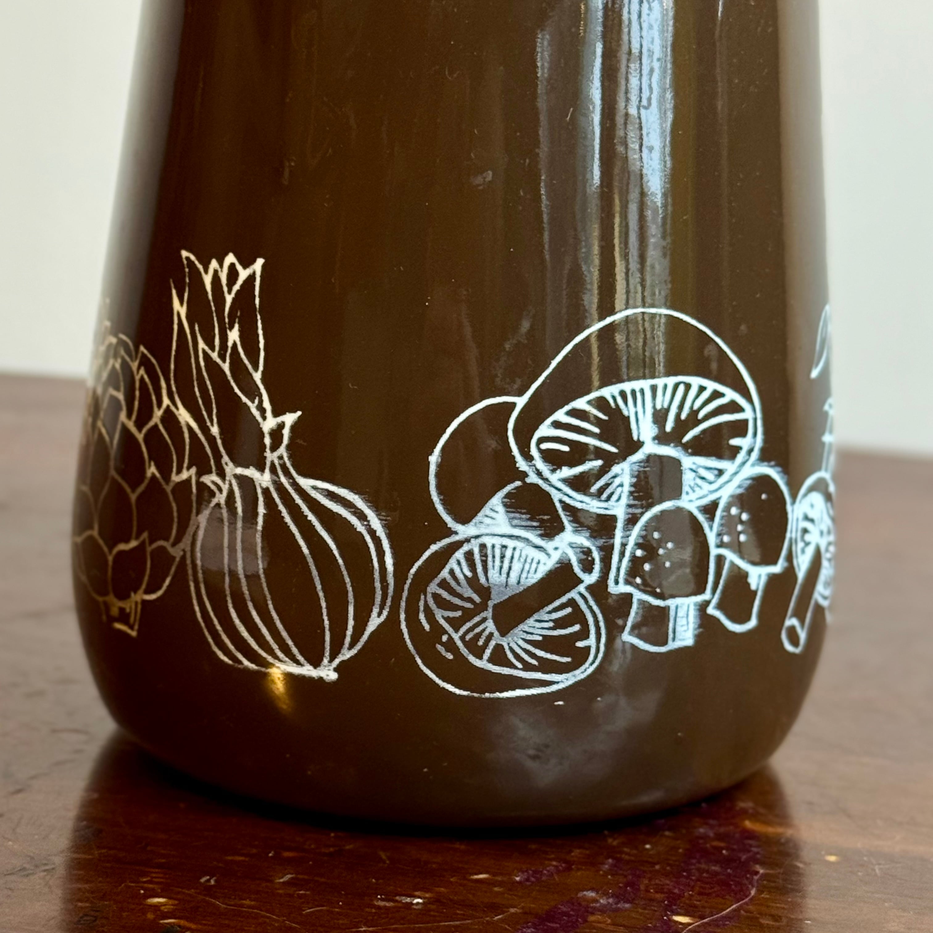 トマトやマッシュルーム、アーティチョークたちが線描で浮かび上がる。