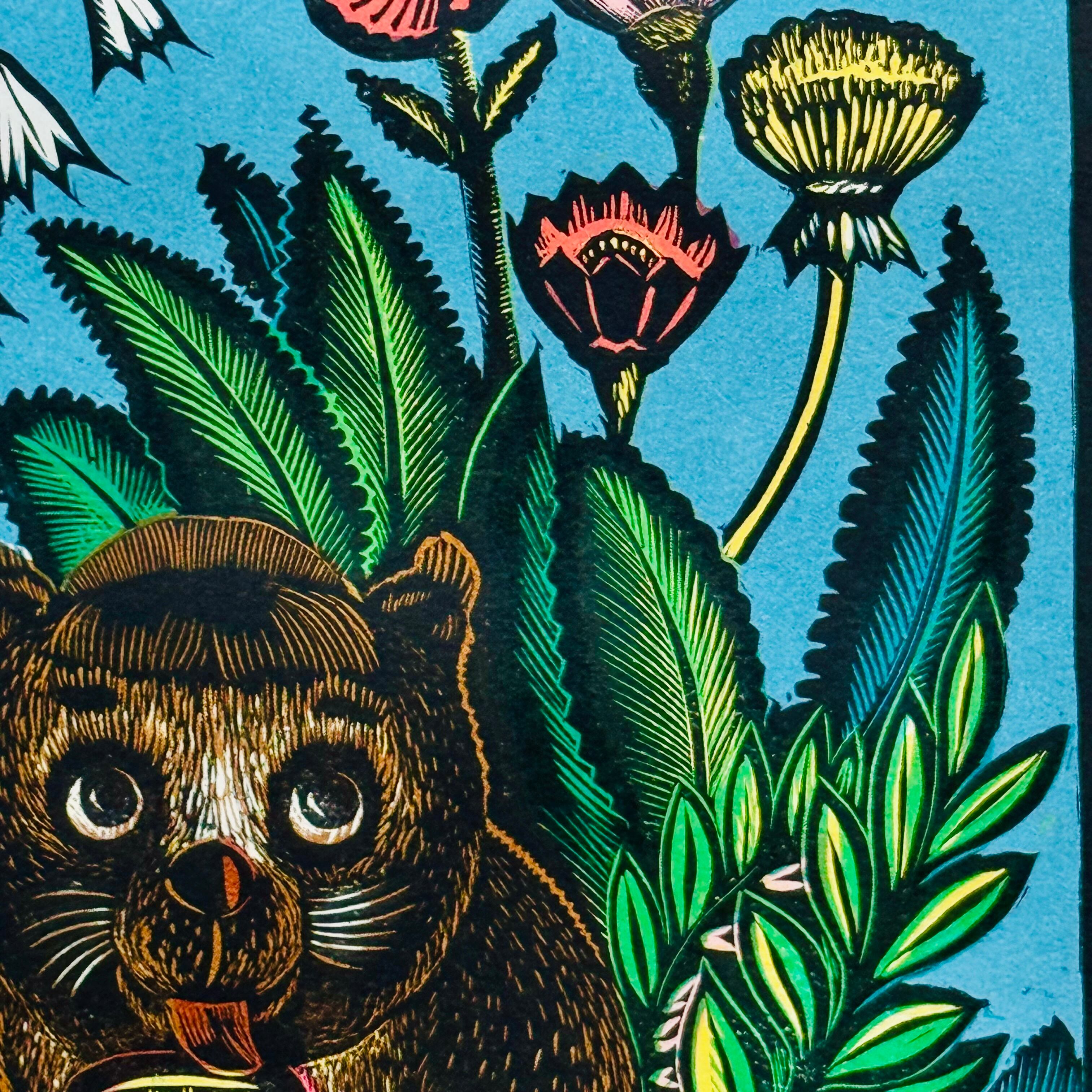 描いたのは イワン・ホフロフ(Ivan Khokhlov)。1970年代ソ連で制作されたロシア版『くまのプーさん』の挿絵で、木版×リノカット風の力強い線と、温かな色彩が特徴的。これは 1978年・モスクワ芸術基金(RSFSR) による単独のカラーリノカット版画で、裏面に当時のラベルが残る。