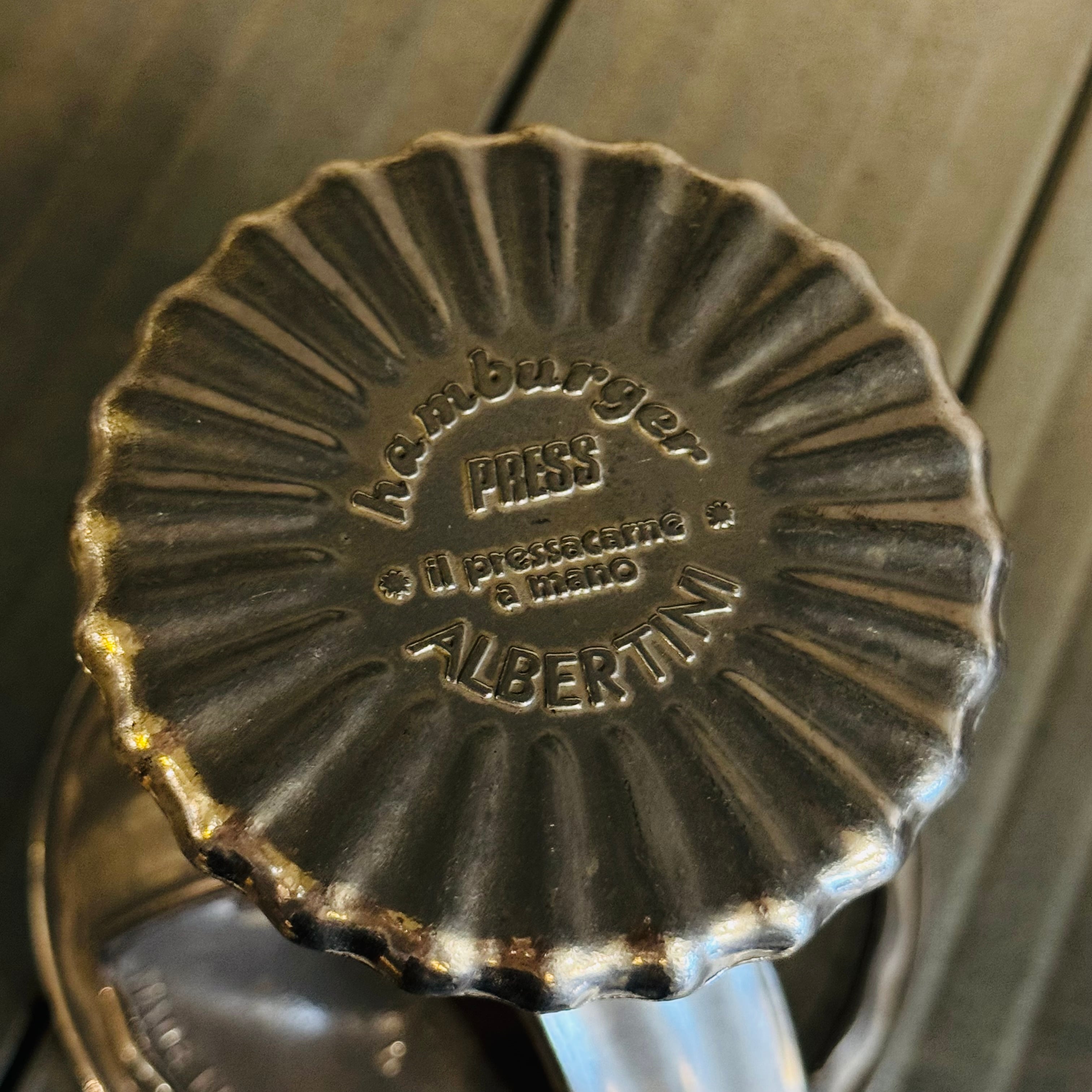 天面には「Hamburger Press / Il pressacarne a mano / ALBERTINI」の刻印があります。
