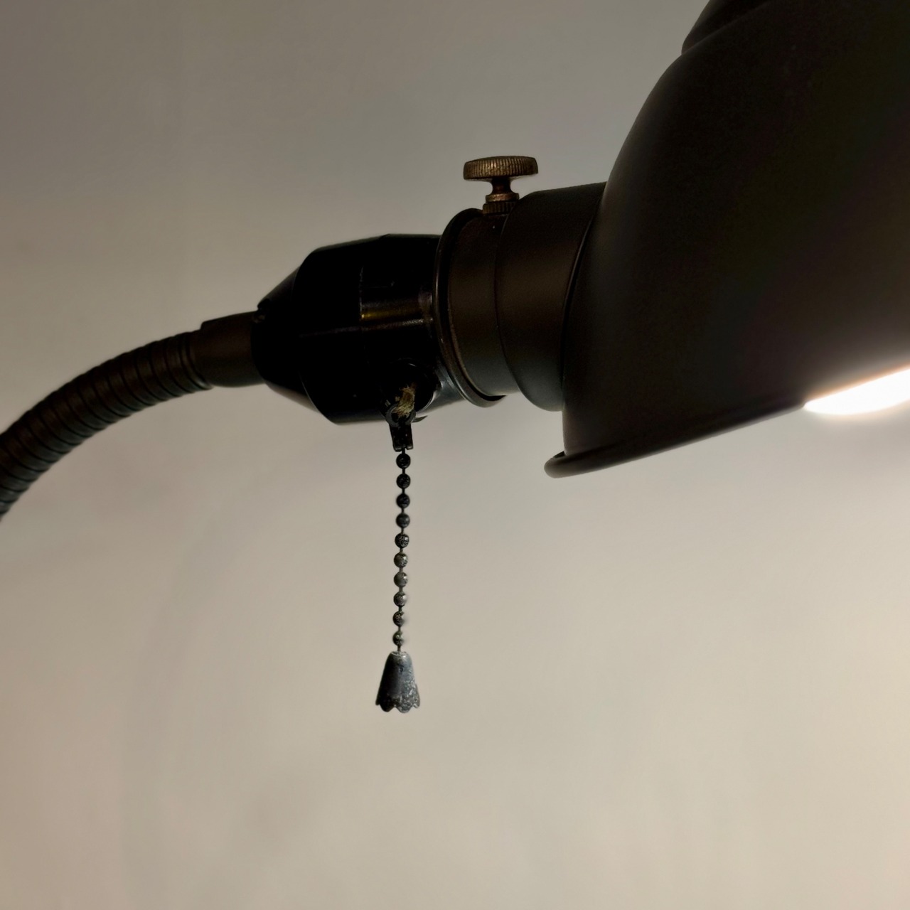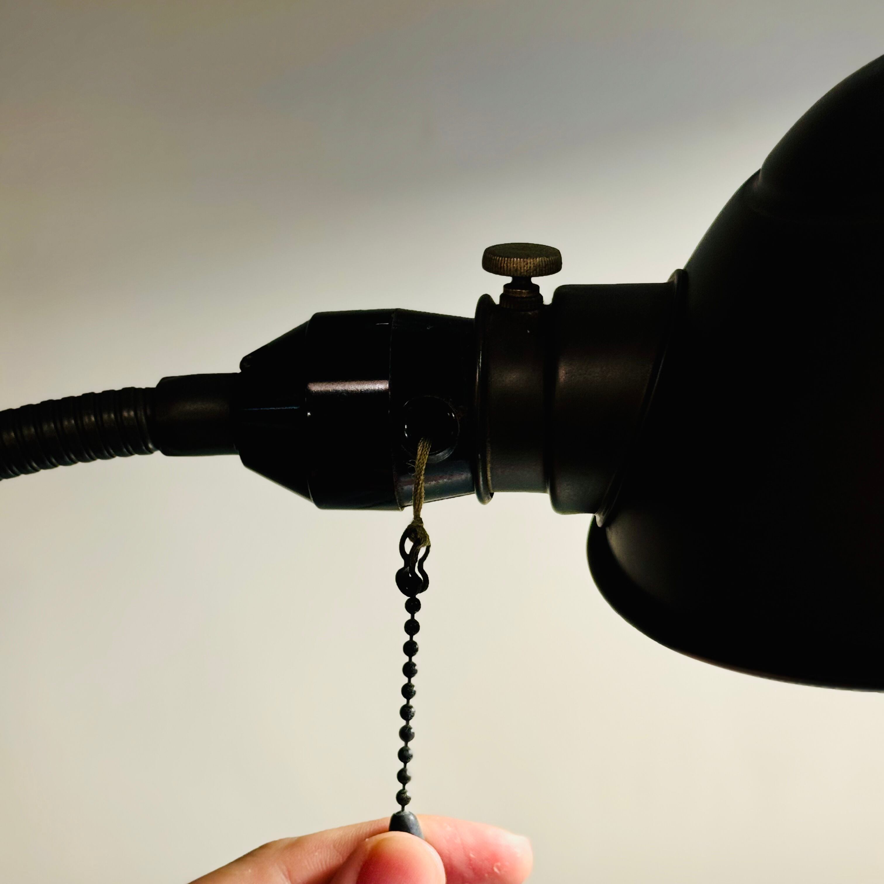 引き紐式スイッチが付いており、点灯・消灯も問題なく動作確認済み。電球付きのため、到着後すぐにご使用いただけます。