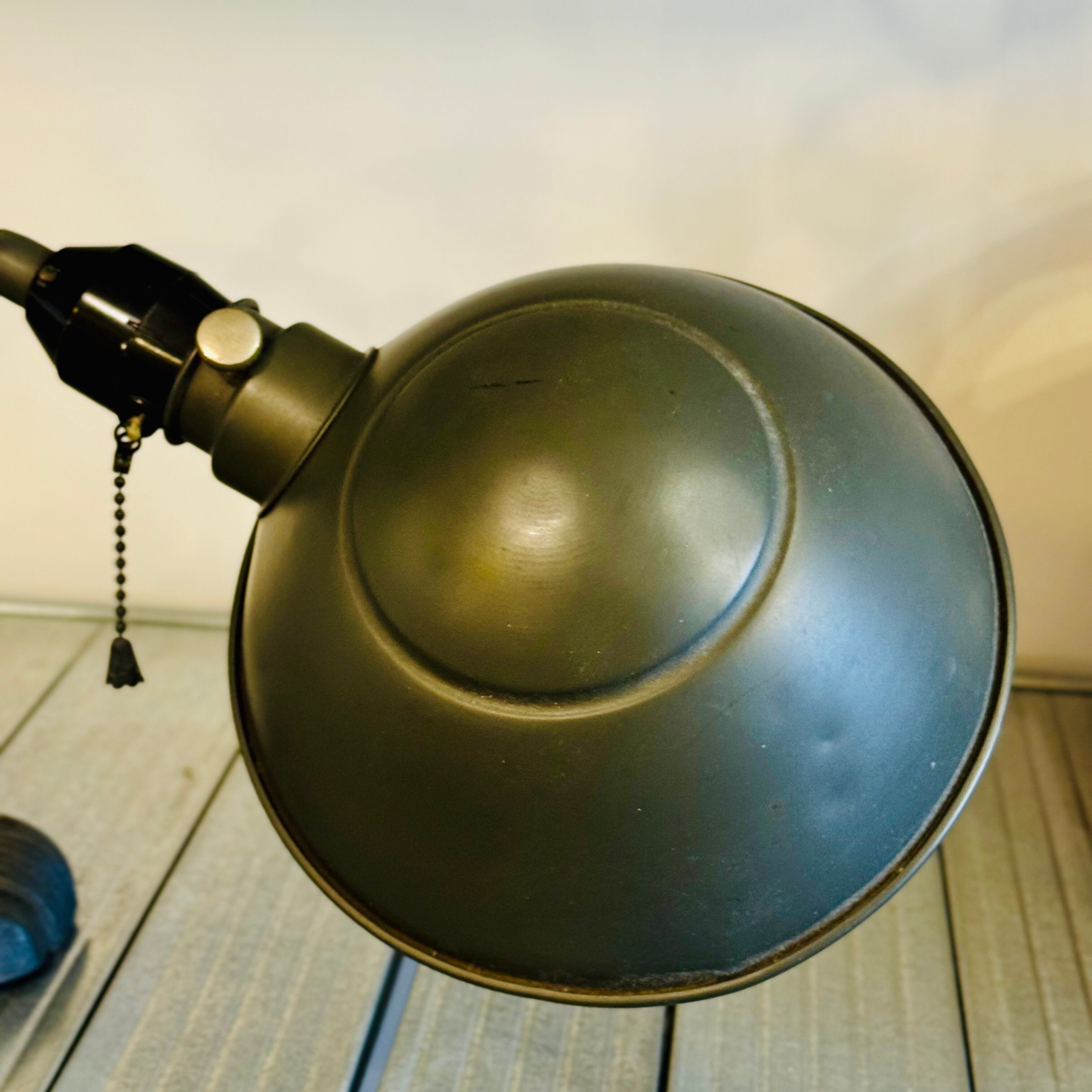 重厚な佇まいが印象的な、ヴィンテージの可動式ライトです。ベースからアーム、シェードまで直線と曲線が美しく構成されており、インダストリアルな雰囲気を強く感じる一点。