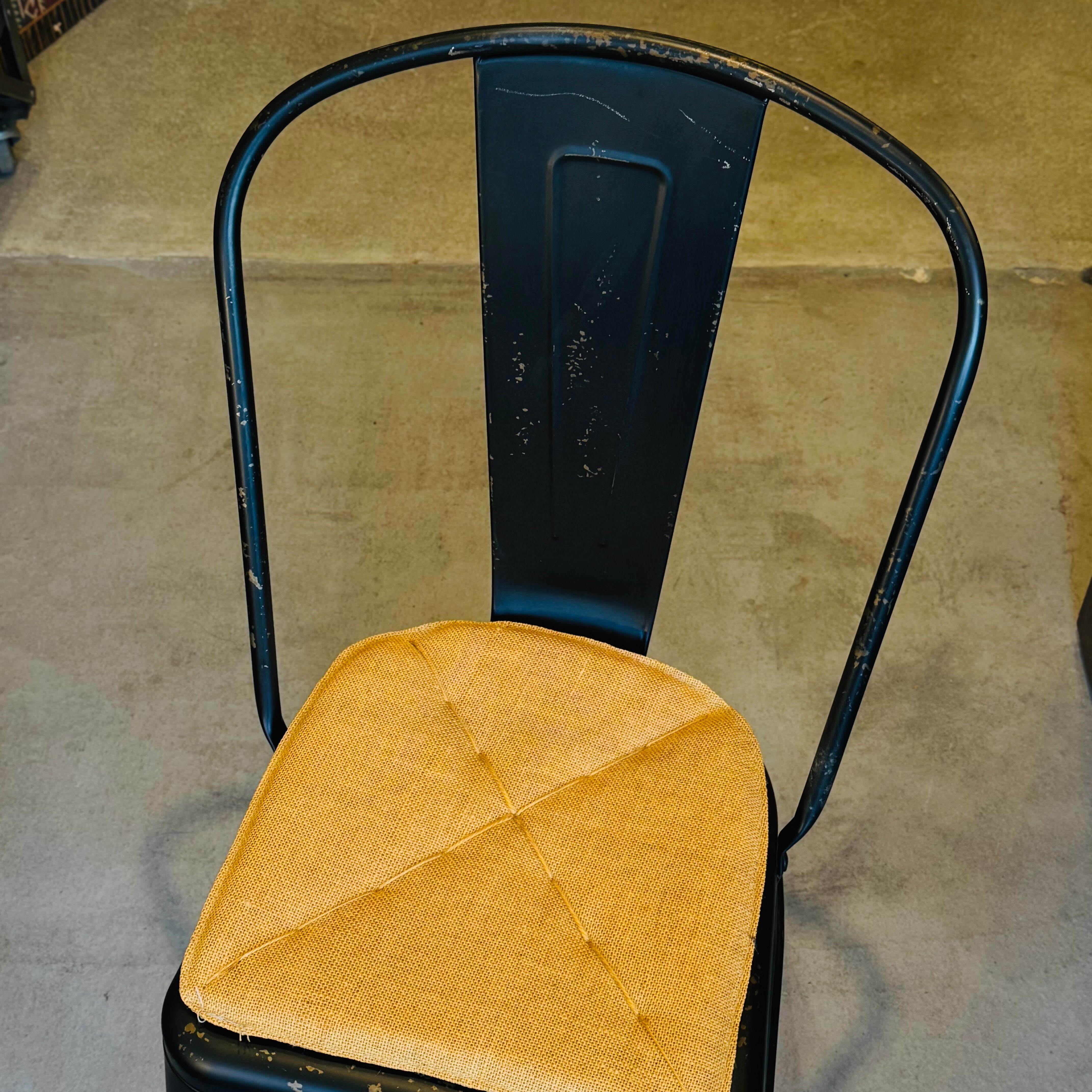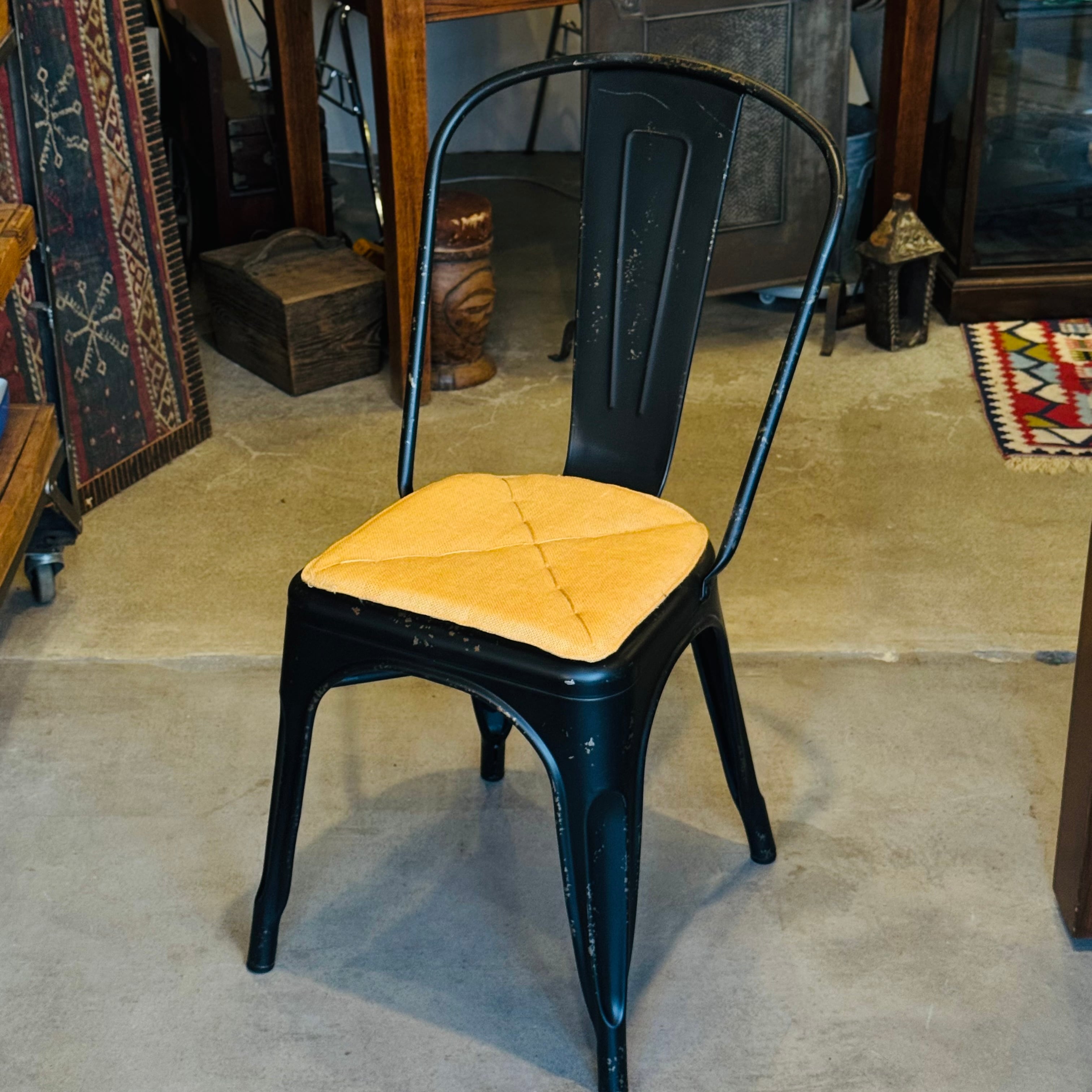 スチール特有の無骨さに、ジュートクッションが付いているため、見た目以上に実用性が高く、ダイニング・デスク・店舗什器としても使いやすい仕様です。