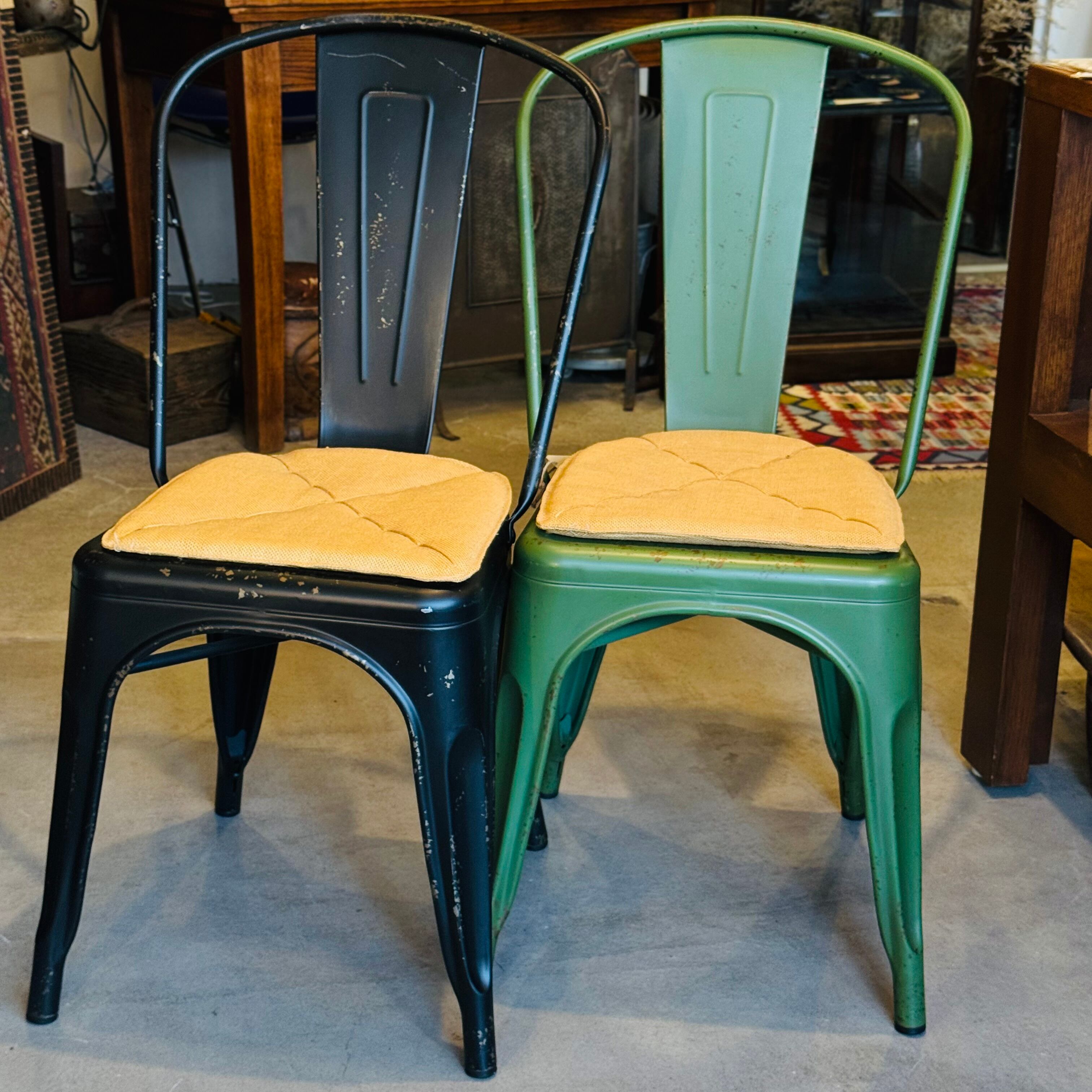 スチール特有の無骨さに、ジュートクッションが付いているため、見た目以上に実用性が高く、ダイニング・デスク・店舗什器としても使いやすい仕様です。