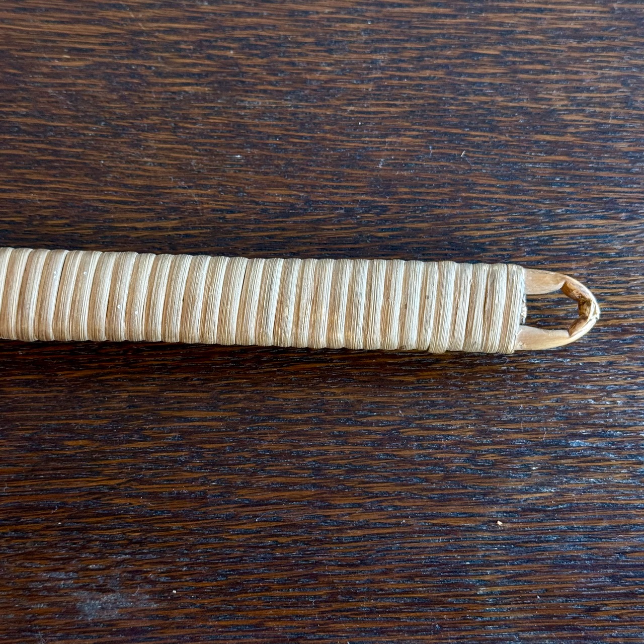 太さの異なる素材を使った編み込みが特徴で、使い込まれた風合いと自然な色の濃淡が魅力の一点です。