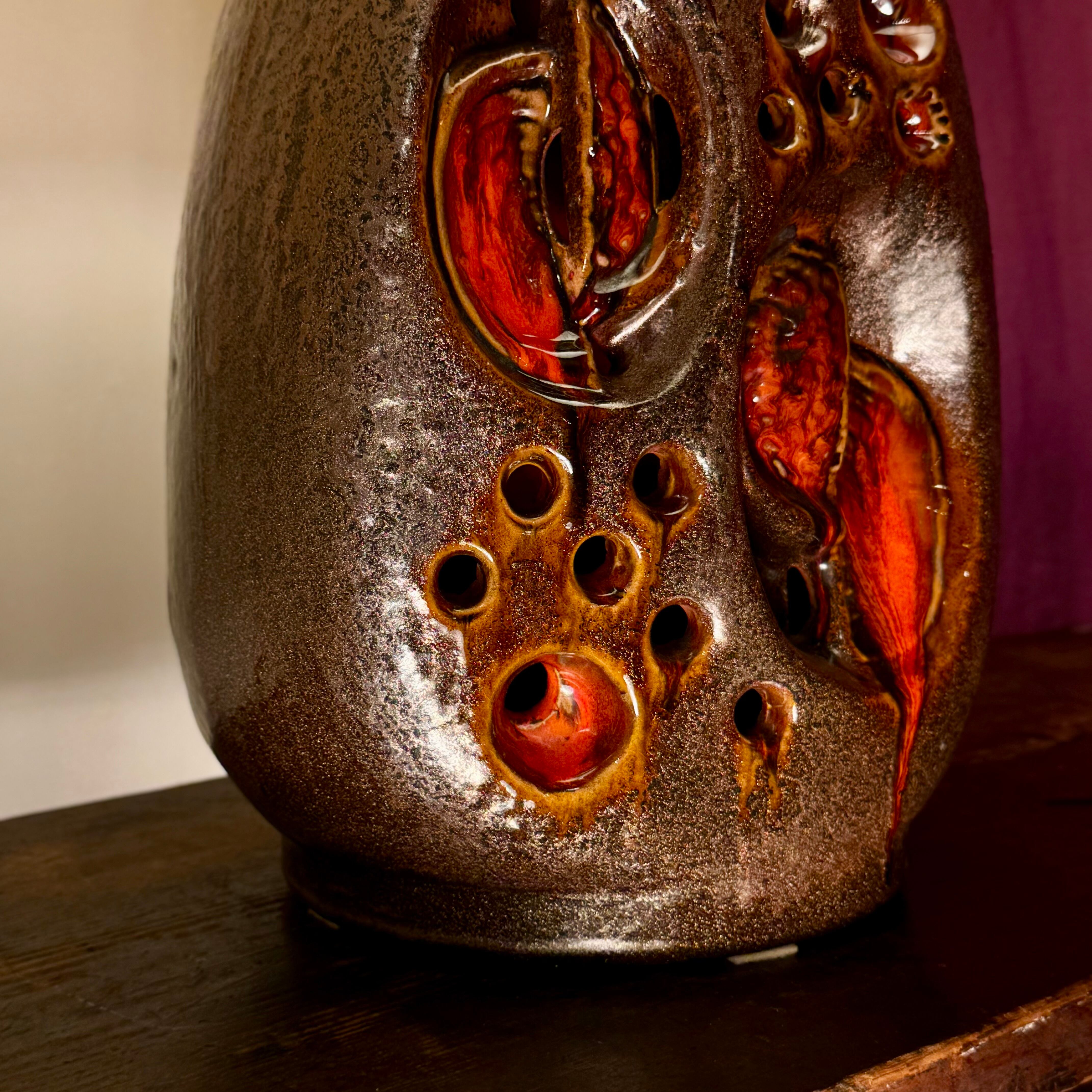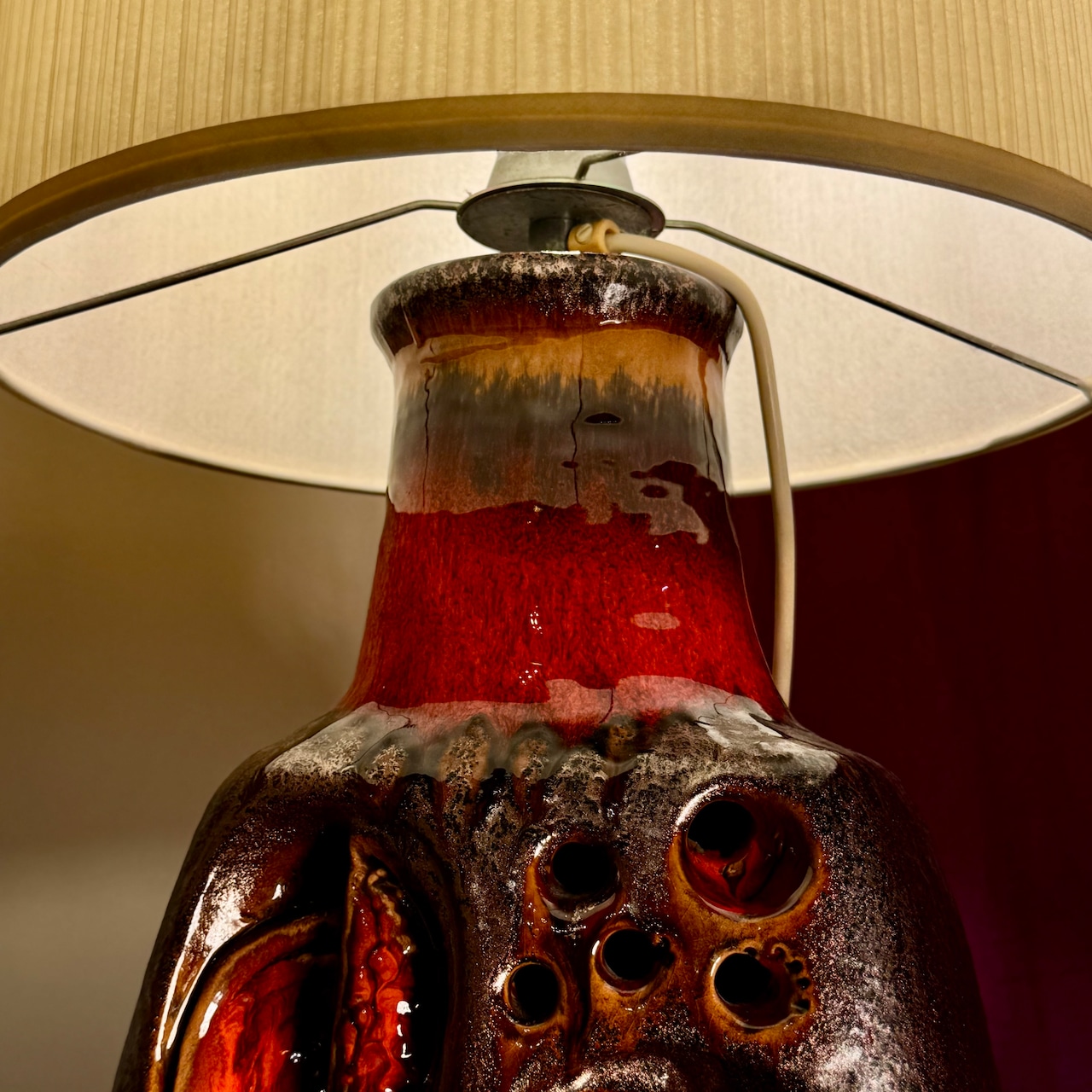赤く滲む釉薬が流れた痕跡。