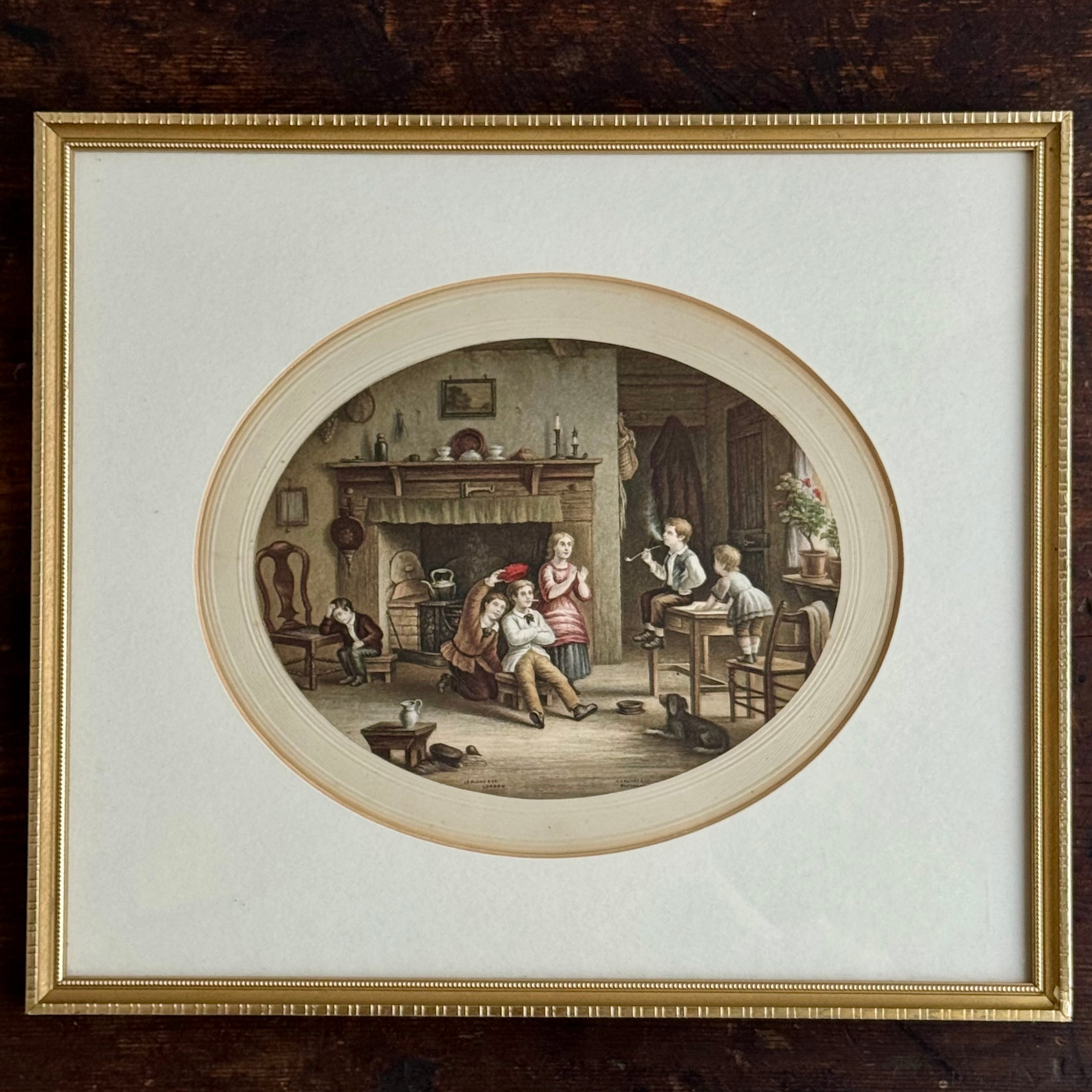 楕円のマットと金色の額縁は、飾るためというより、この風景をそっと囲うためにあるようです。