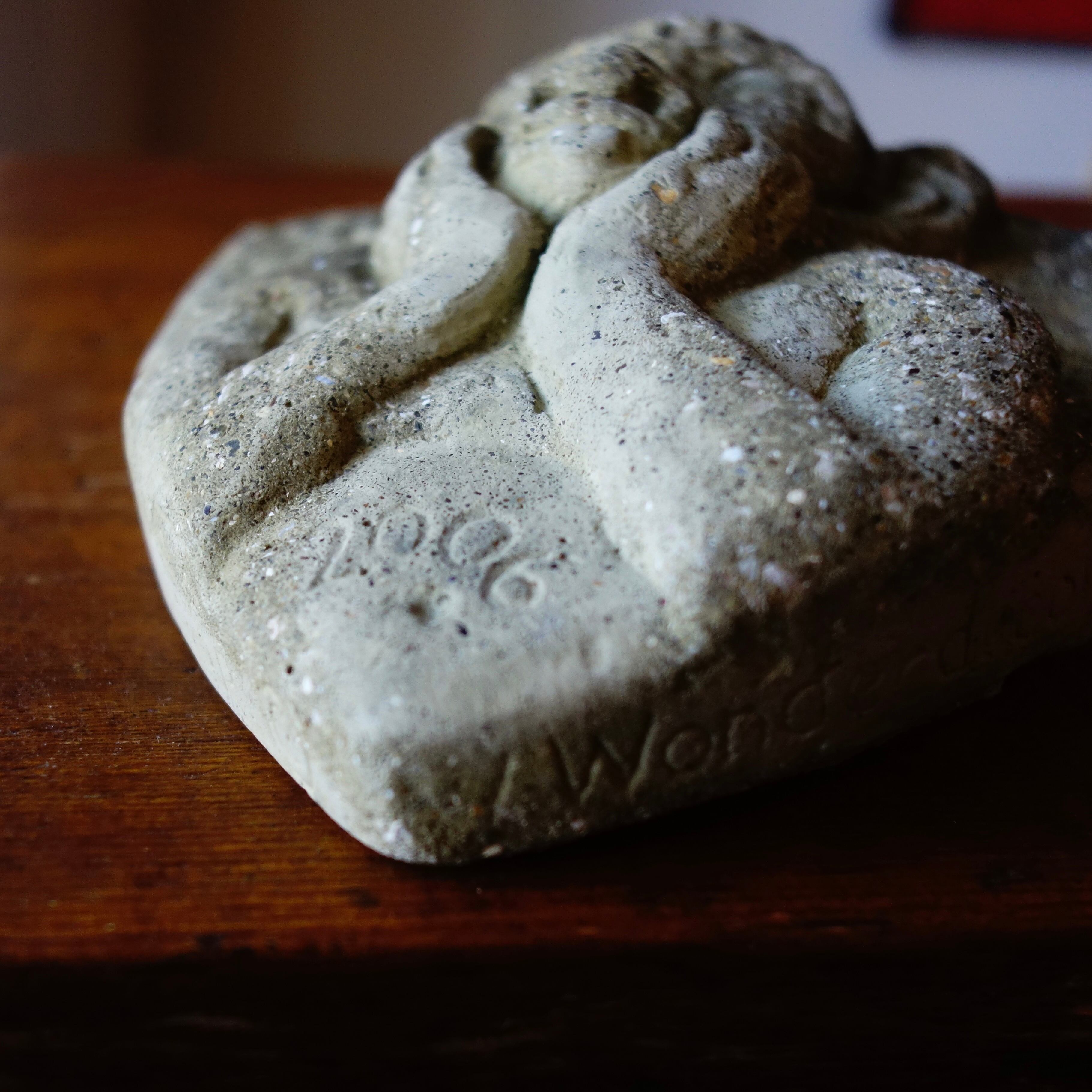 雨樋の機能をもつ、怪物などをかたどった彫刻であるガーゴイルが、頬杖をついたユーモラスな表情が印象的で、庭や玄関先、室内のディスプレイにもおすすめです。