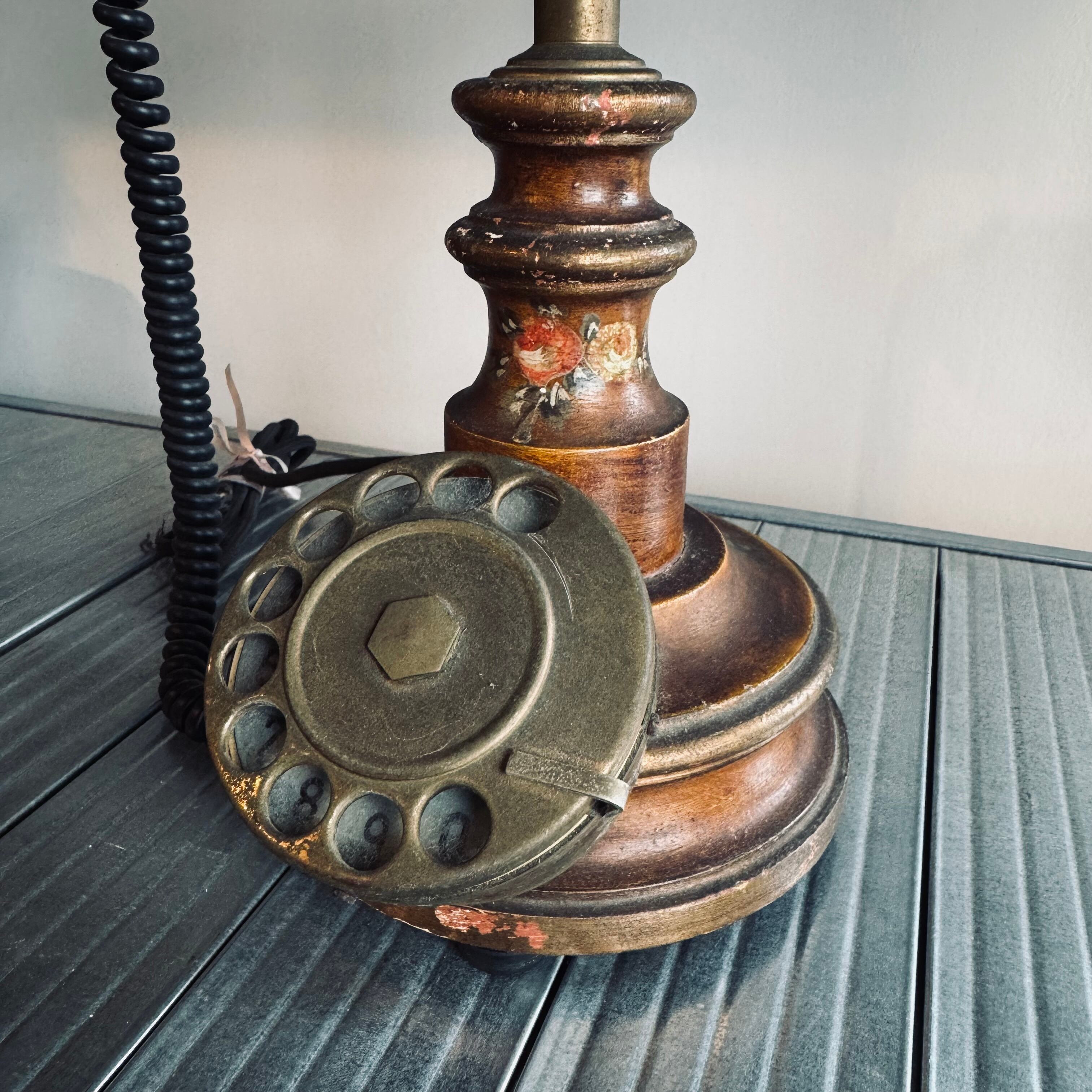 1番の魅力は、木製の本体に描かれた可愛らしい花柄です。時代とともに少し褪せながらも電話器自体の優しい表情を引き出しています。インテリアとしてはもちろん、電話線があるので実際に使用することもできます。